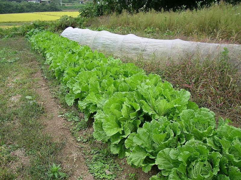 - 直播き栽培:畑に直接種を撒く方法。これにより、根が地中深くまで張り、主根は地中 1m に達することもあるといわれる。これが、干ばつや多雨、気温変化に強い白菜を育てる鍵。
