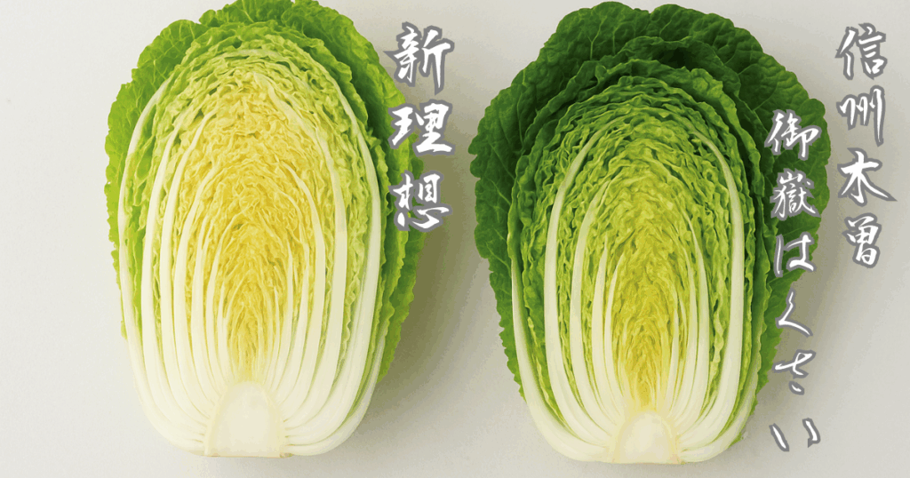 日本では季節や地域、用途に応じて多くの白菜品種が利用されてきました。そのなかでも、新理想(しんりそう)と御嶽はくさい(おんたけはくさい)は、それぞれ異なる背景と特徴を持つ、いわば“対照的な名品白菜”です。