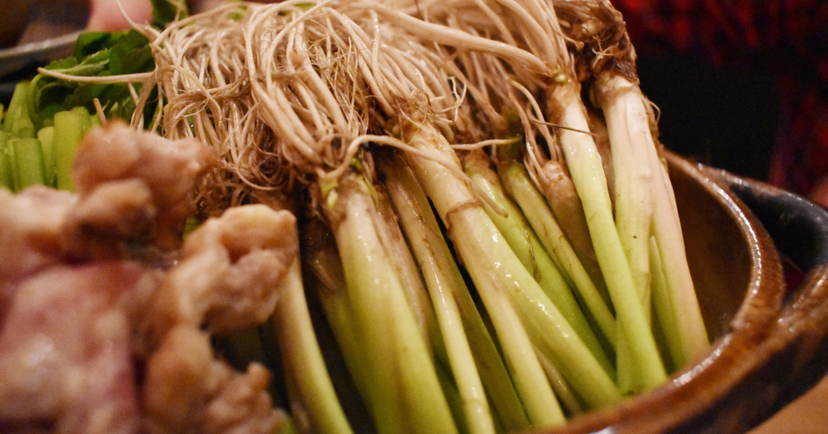 通常、野菜の根は取り除くことが多いですが、せり鍋では白く美しい根を味わうことこそが醍醐味。